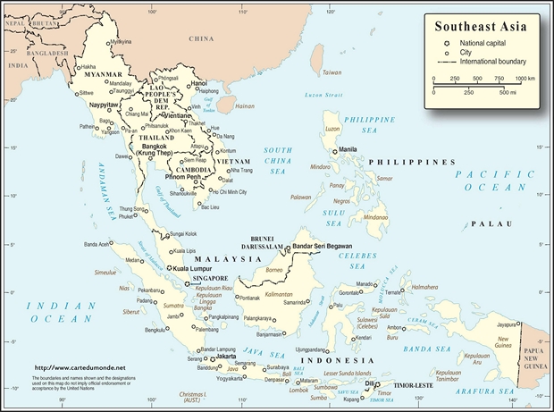 Südostasien Physische Karte